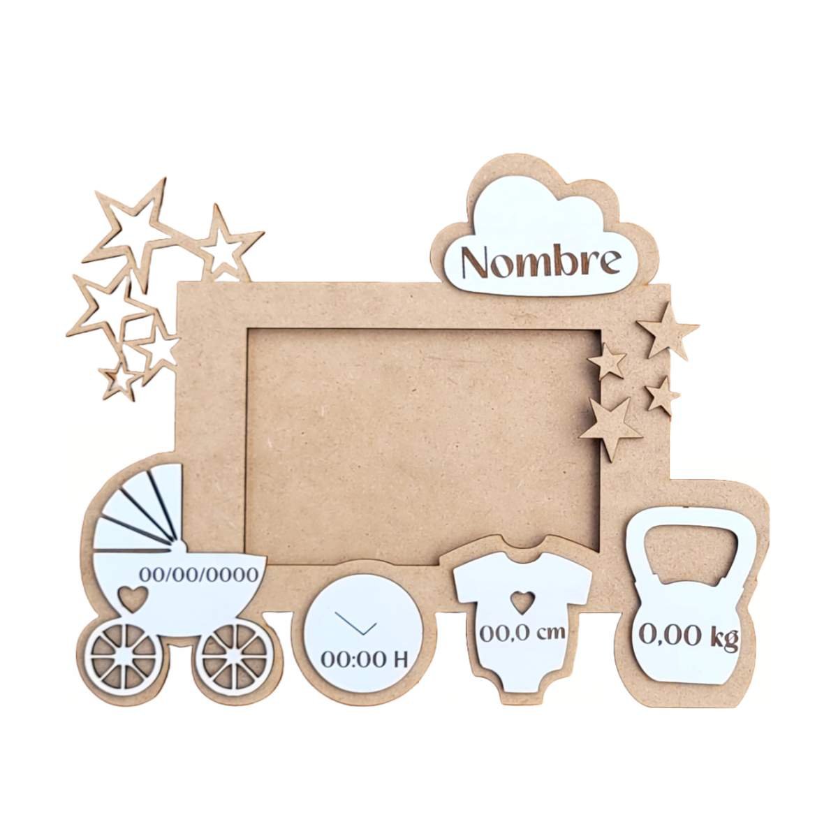 Un recuerdo que trasciende este marco no es solo una pieza decorativa; es un recuerdo tangible que preserva los primeros momentos de tu pequeño, como su nombre, fecha de nacimiento, peso y talla, en una obra de arte única y personal.